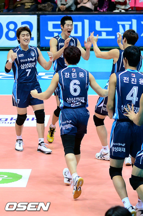 경기 종료 후 삼성화재 유광우, 강민웅을 비롯한 선수들이 기뻐하고 있다. / youngrae@osen.co.kr
