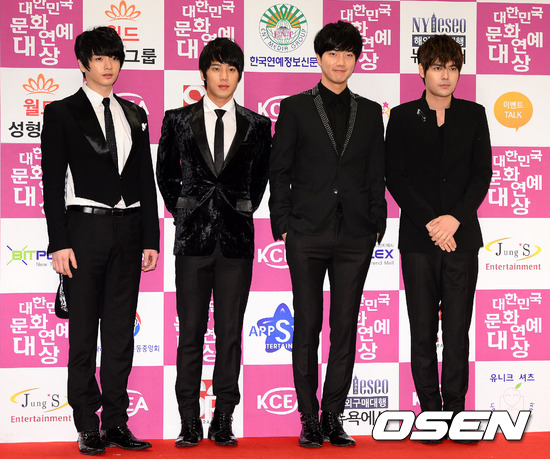6일 오후 서울 영등포구 여의도동 63시티에서 열린 '제20회 대한민국문화연예대상 시상식'에서 그룹 초신성이 포토타임을 갖고 있다.