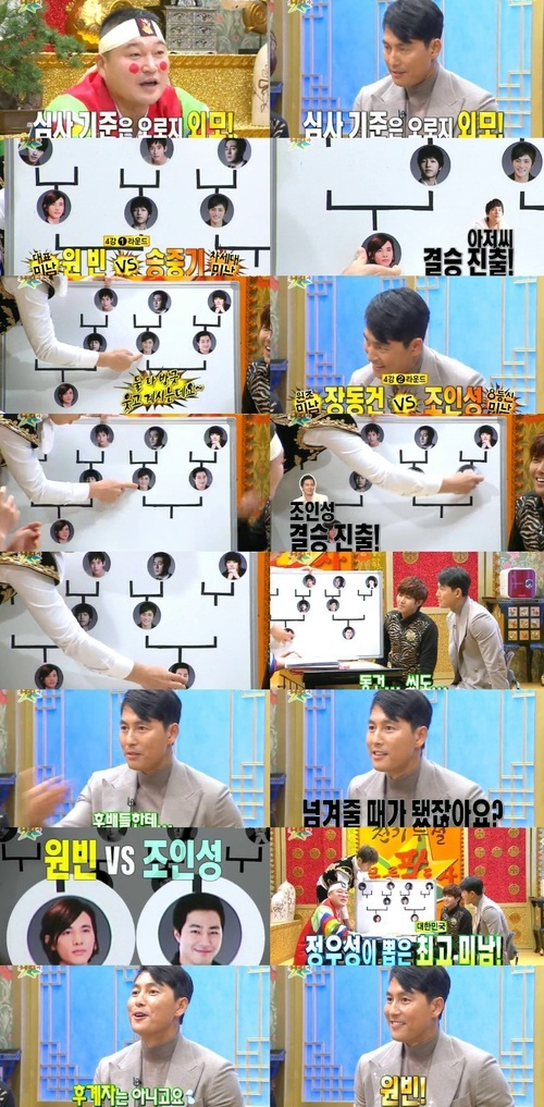이어진 선택에서는 결국 원빈과 송중기 중 원빈을 선택했고, 장동건과 조인성 중에는 조인성을, 그리고 최종적으로 원빈과 조인성 중에서 원빈을 선택했다.