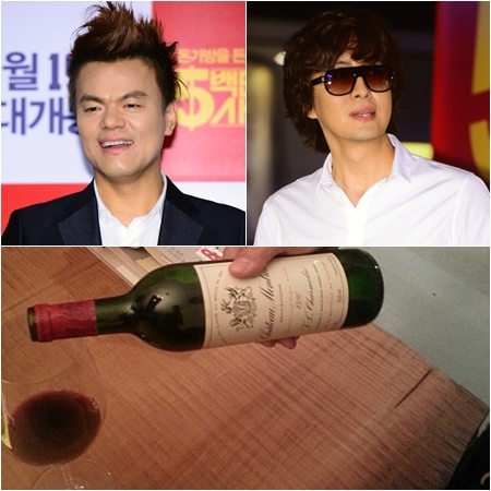 박진영은 6일 오후 자신의 미투데이에 "욘사마가 와인 창고에서 90년 샤또 몽로즈를. 아, 맛있다. 오늘 이경희 작가 누나 집에서 얻어먹은 손수 담근 겨울동 김치에 갈비찜 먹고 기절하고 이어 용준이 집에서.. 오늘 혀가 정신을 못차린다. 감사 감사"라는 글과 함께 한 장의 사진을 게재했다.