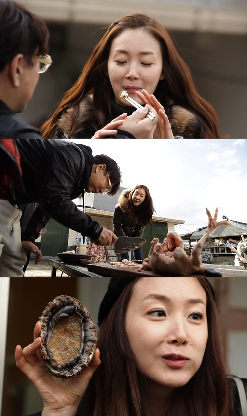 배우 최지우가 날 음식을 먹음직스럽게 먹는 모습으로 청순 여배우 이미지를 벗는다.