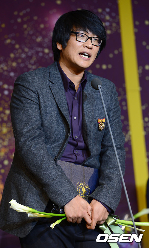 7일 오후 서울 강남 삼성동 코엑스 그랜드볼룸에서 열린 '2012 대한민국 콘텐츠 대상'에서 대통령 표창을 수상한 김진만 PD가 소감을 말하고 있다