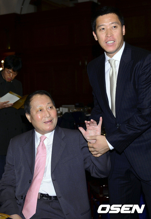 7일 오후 서울 강남구 논현동 임피리얼 팰리스 호텔에서 열린 '2012프로야구 스포츠토토 올해의 상' 시상식에서 LG 이병규가 김인식 전 감독과 인사를 나누고 있다.