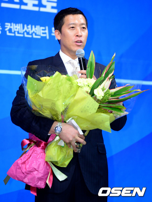 7일 오후 서울 강남구 논현동 임피리얼 팰리스 호텔에서 열린 '2012프로야구 스포츠토토 올해의 상' 시상식에서 올해의 선행상에 선정된 LG 이병규가 수상 소감을 전하고 있다.