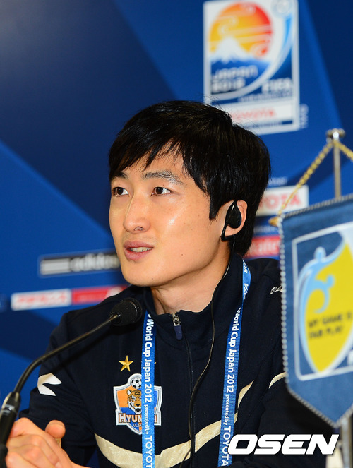 7일 오후 일본 아이치현 도요타시 도요타 스타디움에서 열린 '국제축구연맹(FIFA) 클럽월드컵 2012' 울산 현대의 기자회견에서 울산 주장 곽태휘가 미소지으며 말을 하고 있다.