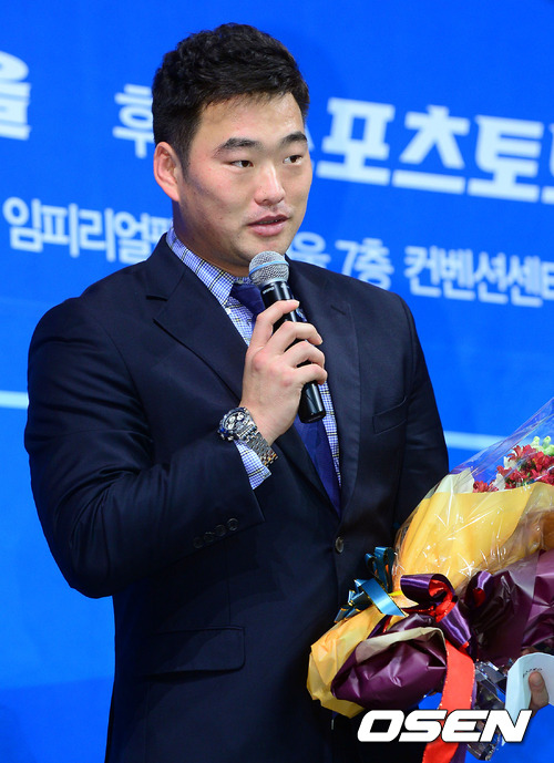 7일 오후 서울 강남구 논현동 임피리얼 팰리스 호텔에서 열린 '2012프로야구 스포츠토토 올해의 상' 시상식에서 올해의 재기상에 선정된 KIA 김진우가 수상 소감을 전하고 있다.
