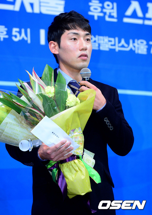 7일 오후 서울 강남구 논현동 임피리얼 팰리스 호텔에서 열린 '2012프로야구 스포츠토토 올해의 상' 시상식에서 올해의 신인상에 선정된 넥센 서건창이 수상 소감을 전하고 있다.