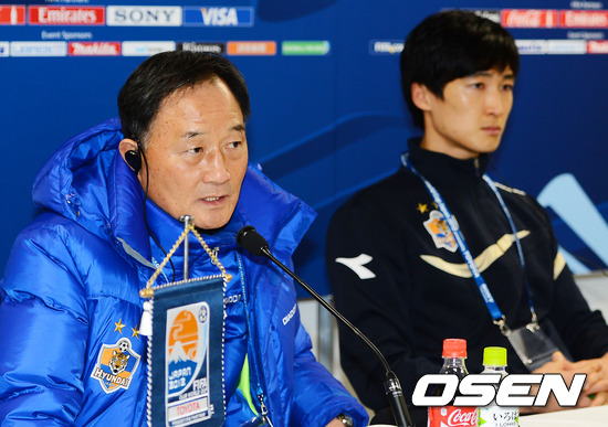 7일 오후 일본 아이치현 도요타시 도요타 스타디움에서 열린 '국제축구연맹(FIFA) 클럽월드컵 2012' 울산 현대의 기자회견에서 울산 김호곤 감독이 말을 하고 있다.