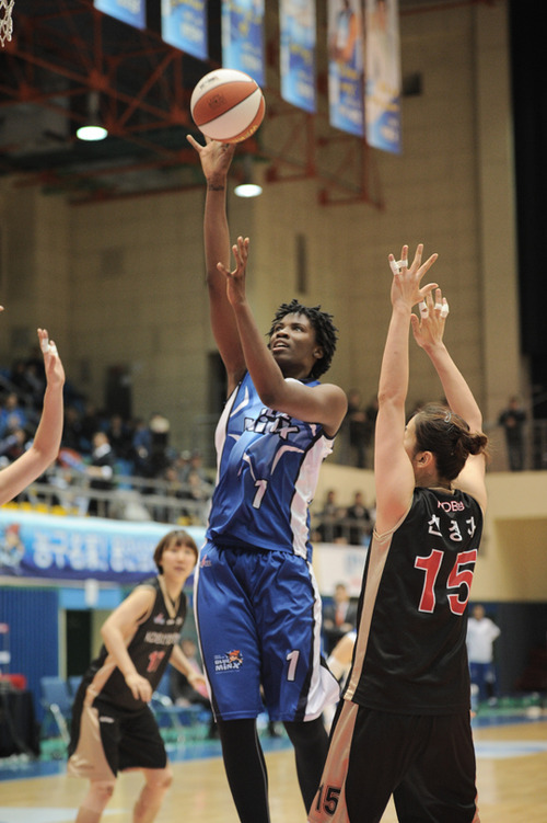 삼성생명은 7일 구리실내체육관에서 열린 KDB금융그룹 2012-2013 여자프로농구 KDB생명과 4라운드 경기에서 63-57로 승리했다.