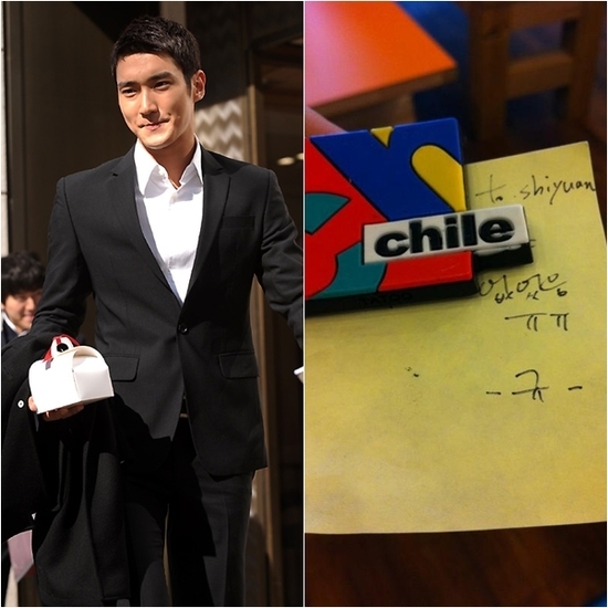 공개된 사진은 책상 위에 '시원에게'라는 글로 시작하는 친필 쪽지와 함께 'Chile'라고 적힌 자석이 높여있다. 슈퍼주니어 멤버 시원을 챙기는 규현의 애틋한 마음이 드러난다.
