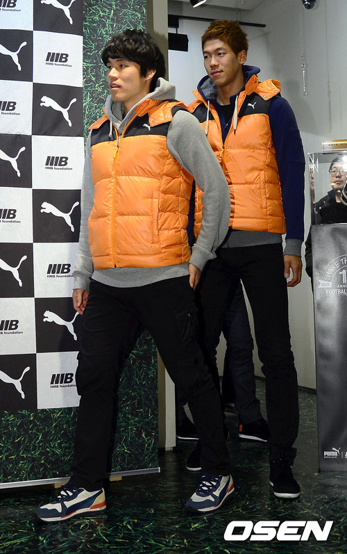 8일 오후 서울 중구 명동 푸마매장에서 열린 '홍명보 자선축구경기 10주년 기념 사인회'에 부산 아이파크 김창수, 이범영이 입장하고 있다.