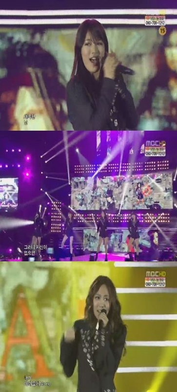이날 메탈 장식이 포인트인 검정 롱 재킷을 입고 등장한 미쓰에이는 각선미를 드러낸 아찔한 하의 실종 패션을 선보이며 인상 깊은 무대를 꾸몄다.