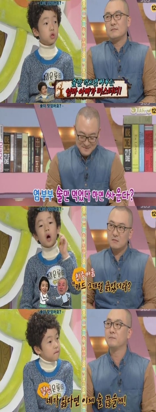 [OSEN=박정선 인턴기자] 개그맨 염경환의 아들 은률 군이 “부모님은 술만 먹으면 부부 싸움을 한다”고 폭로했다.