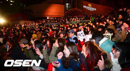 8일 오후 서울 마포구 서교동에 위치한 메세나폴리스 야외 공연장에서 진행된 Mnet '슈퍼스타K4' 우승자 로이킴이 막걸리 게릴라 콘서트에 수 많은 팬들이 콘서트를 관람하고 있다.