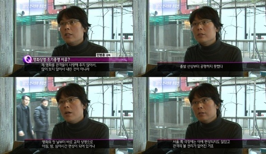 이날 방송에서 민병훈 감독은 '터치' 조기종영에 대한 이유를 묻자 "내 영화를 관객들이 사랑해 주지 않아서, 많이 보지 않아서 내린 것이 아니라 출발 선상부터 공평하지 못했다"라고 말했다.