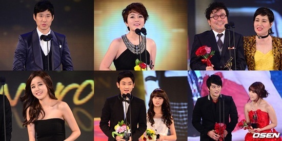 우수남자연기상은 ‘넝쿨째 굴러온 당신’에서 국민남편으로 사랑을 받은 유준상과 ‘해를 품은 달’을 통해 최고의 대세로 떠오른 김수현이 공동수상 했다. 또한 ‘골든타임’으로 최인혁 교수 신드롬을 낳은 이성민이 남자 연기상을, ‘신사의 품격’에서 청담동 재벌녀의 역할을 완벽하게 소화한 김정난이 여자연기상을 받았다.