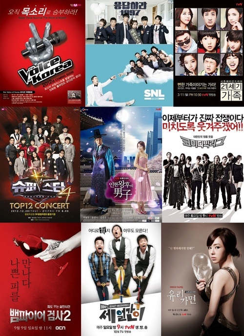 엠넷의 경우 국민 오디션 ‘슈퍼스타K’ 외에도 ‘보이스 코리아’로 이어지는 음악 오디션 프로그램의 흥행으로 ‘뮤직 메익스 원(Music Makes One)’이라는 채널의 캐치프레이즈를 공고히 했다. 방송에서, 그것도 코미디라는 장르에서 19금 소재의 개그를 한 ‘SNL코리아’도 2012년 tvN을 의미하는 프로그램이 됐다. 반면 드라마는 예능과 드라마의 경계라던 주간드라마 ‘응답하라 1997’만이 대박으로 분류되며 외롭게 선방했다. 이 밖에 OCN에서 기획한 ‘뱀파이어 검사 시즌2’ 정도가 2% 후반 시청률로 자존심을 지켰다.