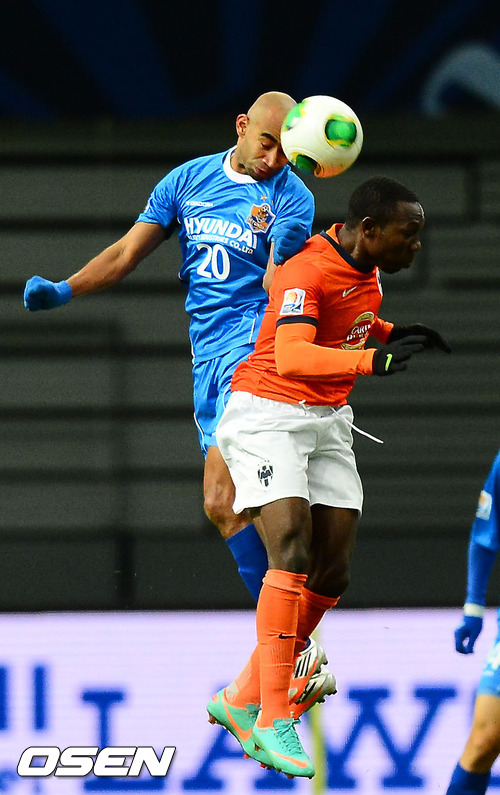 후반 울산 에스티벤이 공중볼 다툼을 하고 있다.