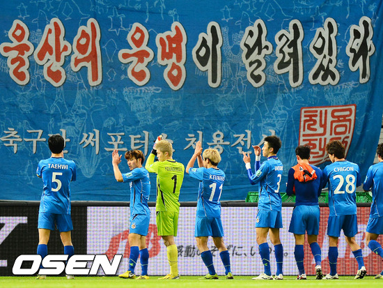 경기를 마치고 울산 선수들이 팬들에게 박수를 보내고 있다.