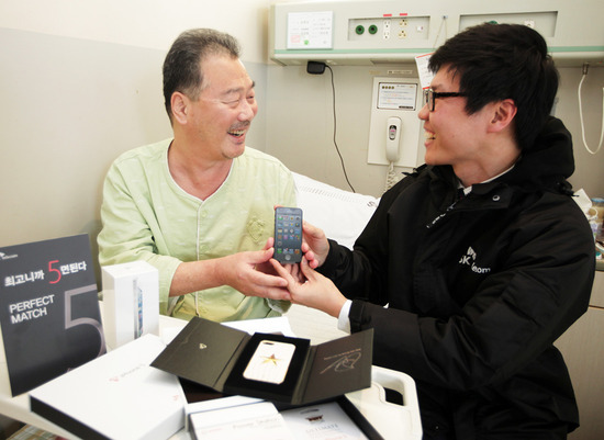 병원 입원중에 출장 개통으로 아이폰5를 받은 김정치 씨(61세)와 김양숙 씨(53세)는 "병원에 입원한 아버지, 병간호에 고생하는 어머니를 위해 아들이 출장 개통 이벤트를 신청해 깜짝 선물을 받아 기쁘다"며 "직접 찾아갈 수 없는 상황임에도 SK텔레콤 덕분에 이런 선물을 받게 되니, 역시 1등 통신사의 서비스는 과연 다르다는 게 느껴진다"고 소감을 밝혔다.