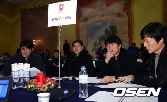 10일 오전 서울 홍은동 그랜드힐튼호텔에서 진행된 '2013년 K리그 신인선수 선발 드래프트'에서 부천 FC 구단 관계자들이 신인선수 선발을 위해 신중하고 논의하고 있다.