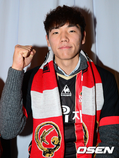 10일 오전 서울 홍은동 그랜드힐튼호텔에서 진행된 '2013년 K리그 신인선수 선발 드래프트'에서 1라운드에 지명된 FC서울 김남춘이 포토타임을 갖고 있다.
