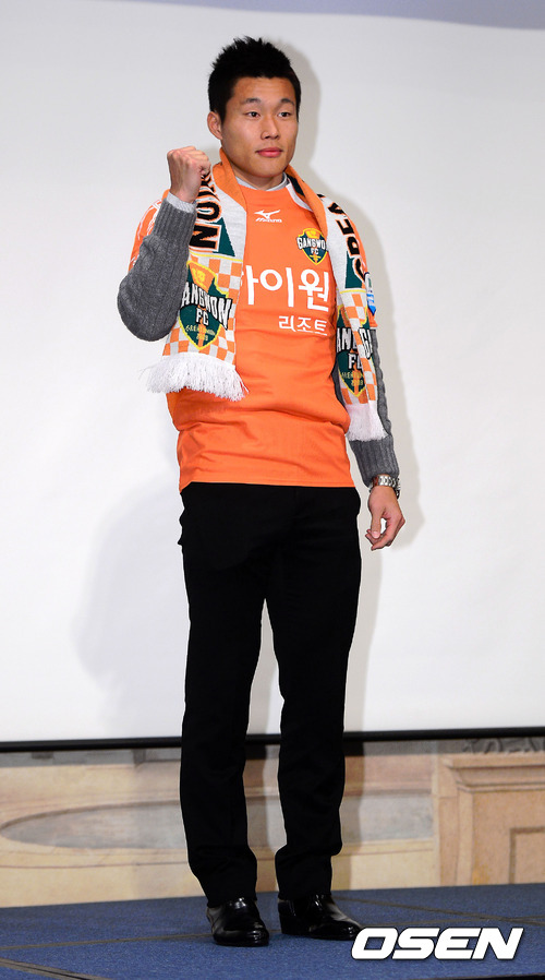 10일 오전 서울 홍은동 그랜드힐튼호텔에서 진행된 '2013년 K리그 신인선수 선발 드래프트'에서 강원 FC 이창용이 포토타임을 갖고 있다.