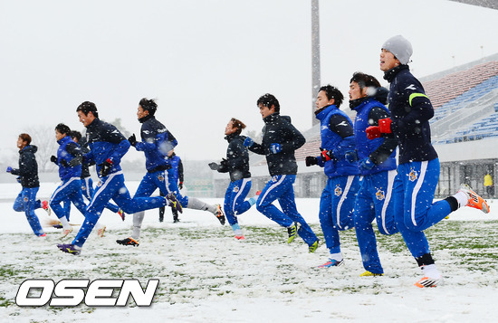 울산 현대,'히로시마전 필승 각오를 다지며, 폭설 훈련'