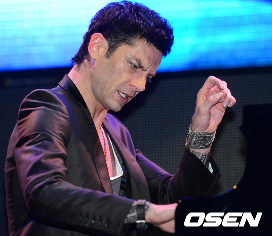 피아니스트 막심 므라비차(Maksim Mravica)가 10일 오후 서울 청담동 클럽 엘루이에서 열린 쇼케이스에서 연주를 펼치고 있다.