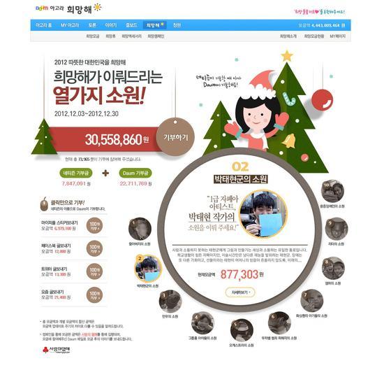 ‘따뜻한 대한민국 겨울만들기 캠페인'은 지난 2005년부터 진행해온 다음의 대표적인 모금 캠페인으로, 소외된 이웃을 돌아보고 경기 침체로 인해 삭막해지는 사회를 따뜻하게 하자는 취지로 기획됐다.