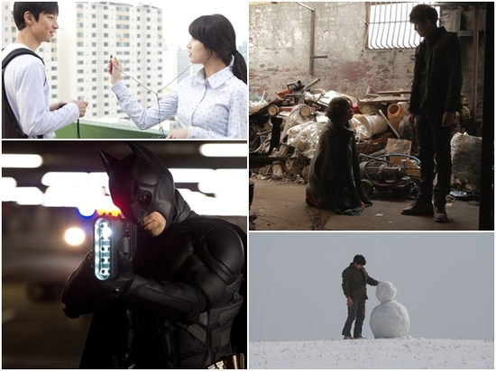 3.최고의 액션신 : ‘다크 나이트 라이즈’. ‘다크 나이트’와 같은 영화를 원했던 관객들에게는 뒤통수(?)를 날린 작품이 됐지만, 창의적이고 화려한 액션신으로 많은 명장면을 남겼다. 마지막 20분 배트맨의 병기들이 총 등장하는 숨 막히는 최종전투장면이 압권. 또한 비행기 위에 거대한 비행기가 함께 날다가 특수요원들이 밧줄을 타고 내려와 비행기를 공중에서 건져 올리는 장면이나 피츠버그의 하인즈 워드가 달려오는 뒤로 미식축구 경기장이 무너지는 모습 등 CG같지 않는 스펙터클한 장면들도 크리스토퍼 놀란이기에 생각할 수 있는 아찔하고 창의적인 액션신이었다.