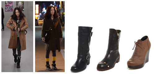 누구나 손쉽게 스키니진, 레깅스에 매치할 수 있는 컬러감이 있는 야상이나 보이프렌드핏의 박시한 아우터, 여기에 지니킴 버클 워커, 웨지 부츠, 레이스업 스니커즈와 같이 활동성을 보여주는 슈즈를 스타일링하여 그의 발랄함을 더욱 부각시키고 있다.