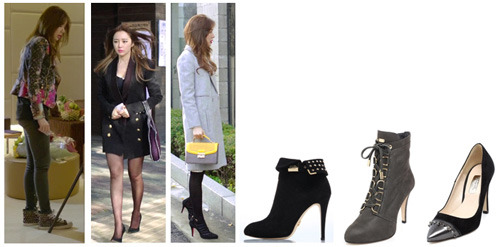 특히나 윤은혜의 스타일링 중 눈에 띄는 것은 과감한 슈즈의 선택이다. 캐주얼한 스키니진과 라이더 재킷에는 센스가 돋보이는 스터드 스니커즈를, 포멀한 재킷에는 섹시한 스틸레토힐이나 디테일이 있는 앵클 부티 등을 매치해 범상치 않은 패션센스를 드러낸다.
