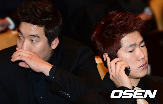 두산 김현수와 SK 박희수가 긴장된 표정으로 시상식을 기다리고 있다.