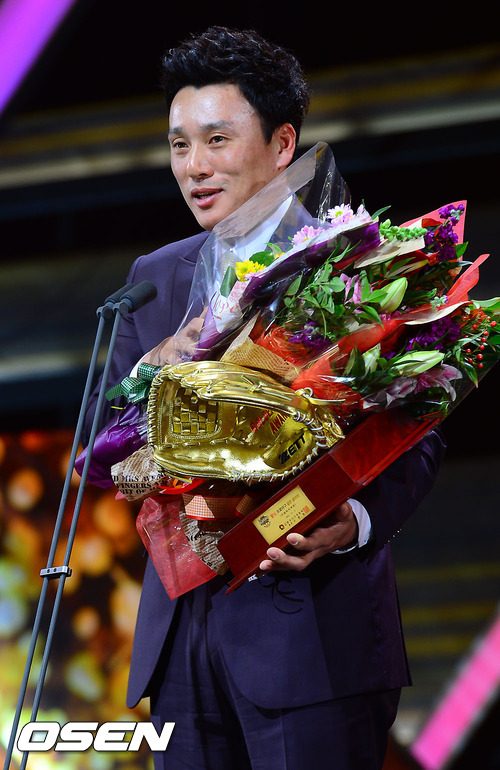 삼성 이승엽이 골든글러브 지명타자 부문상을 수상 후 소감을 말하고 있다