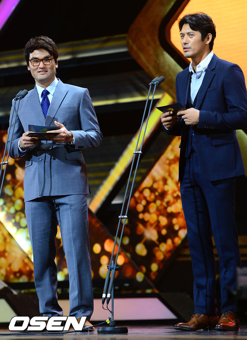 박찬호가 배우 오지호와 함께 시상을 하고 있다