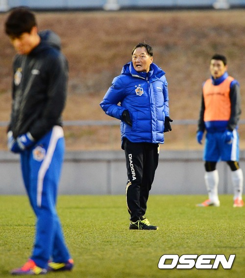 훈련 중 울산 김호곤 감독이 지시를 내리고 있다.