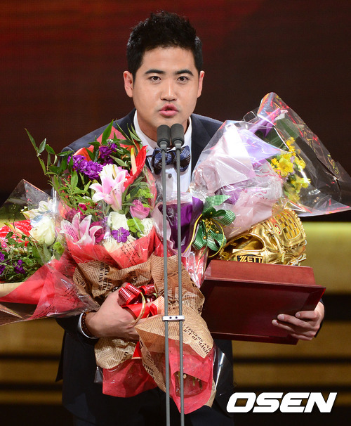 투수 부문 골든글러브를 수상한 삼성 장원삼이 소감을 말하고 있다.