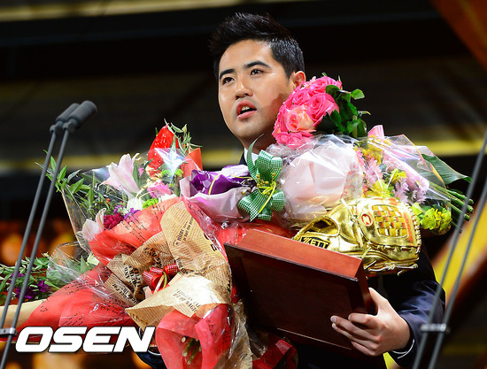 골든글러브 투수부문상을 수상한 삼성 장원삼이 소감을 말하고 있다