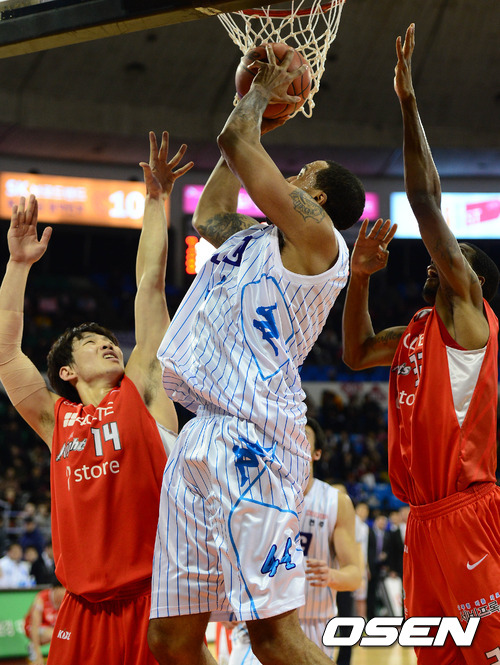 11일 오후 서울 잠실학생체육관에서 열린 'KB 국민카드 2012-2013 프로농구' 서울 SK와 전주 KCC의 경기, 1쿼터 KCC 알렉산더가 골밑슛을 시도하고 있다.