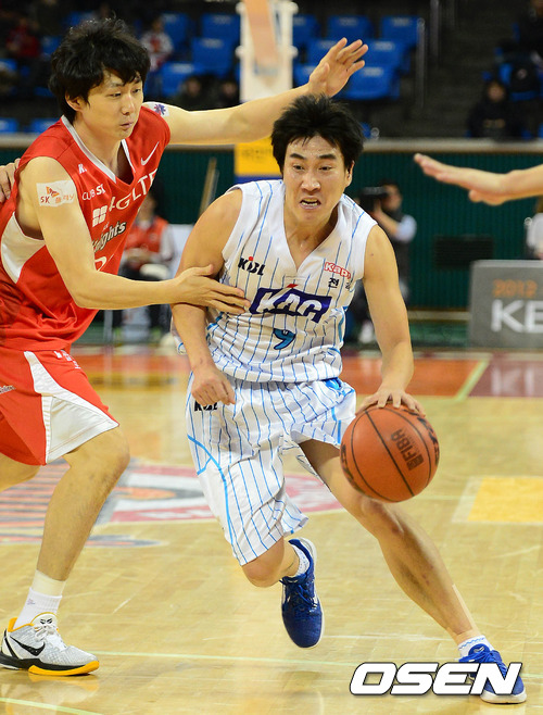 11일 오후 서울 잠실학생체육관에서 열린 'KB 국민카드 2012-2013 프로농구' 서울 SK와 전주 KCC의 경기, 1쿼터 KCC 임재현이 SK 수비진을 돌파하고 있다.