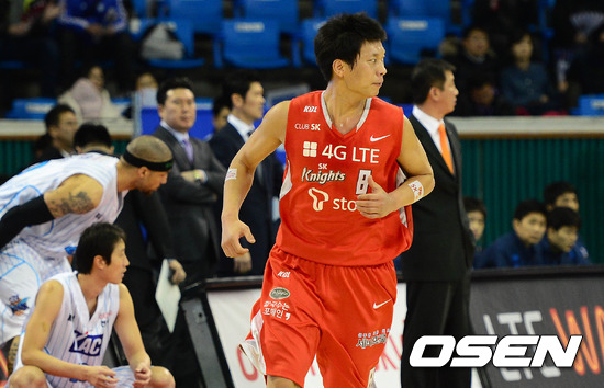 11일 오후 서울 잠실학생체육관에서 열린 'KB 국민카드 2012-2013 프로농구' 서울 SK와 전주 KCC의 경기, 1쿼터 SK 박상오가 3점슛을 성공시키고 수비 위치로 가고 있다.