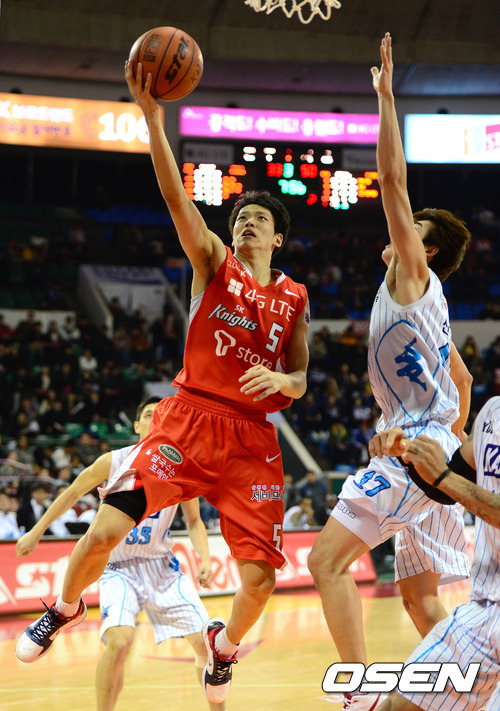 11일 오후 서울 잠실학생체육관에서 열린 'KB 국민카드 2012-2013 프로농구' 서울 SK와 전주 KCC의 경기, 3쿼터 SK 김선형이 KCC 수비진을 돌파후 레이업슛을 시도하고 있다.