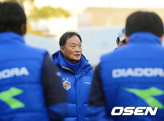 울산 김호곤 감독이 선수들을 모아놓고 미팅을 하고 있다.