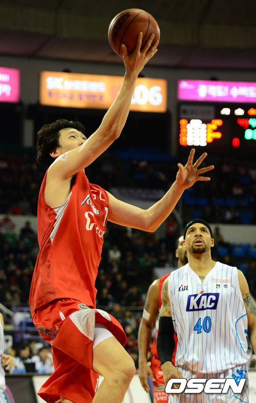 11일 오후 서울 잠실학생체육관에서 열린 'KB 국민카드 2012-2013 프로농구' 서울 SK와 전주 KCC의 경기, 4쿼터 SK 김동우가 레이업슛을 시도하고 있다.