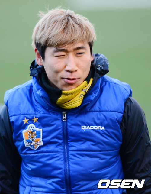 울산 이근호가 훈련 중 눈으로 사인을 보내고 있다.