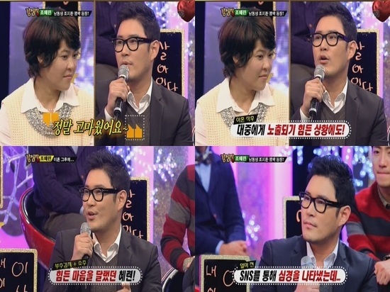 조지환은 11일 오후 방송된 SBS '강심장'에 출연해 "누나가 이혼 결정을 하면서 쪽방에 같이 살았다. 제 방에서 그렇게 부추김치에 소주를 마셨다. (이혼을 한다는 사실을) 알고 있었는데 막상 기사가 나니까 밑에 말도 안되는 이야기가 써 있었다. 속이 상해서 트위터에 '마음이 아프다, 가슴이 찢어진다'는 글을 올렸다"고 밝혔다.