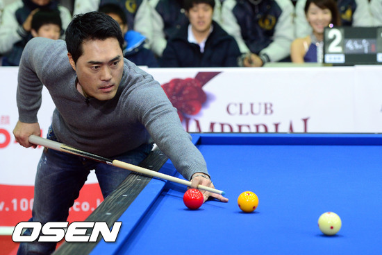 12일 오전 서울 송파구 삼전동 배명고등학교 체육관에서 진행된 제1회 지마이다스배 '2012 프로야구선수 3쿠션대회'에서 조성환이 진지한 표정으로 경기에 임하고 있다.