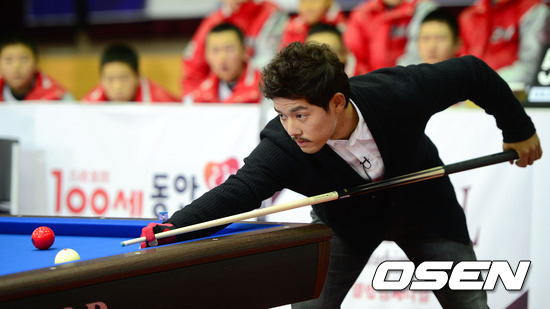 12일 오전 서울 송파구 삼전동 배명고등학교 체육관에서 진행된 제1회 지마이다스배 '2012 프로야구선수 3쿠션대회'에서 KIA 이용규가 진지한 표정으로 경기에 임하고 있다.