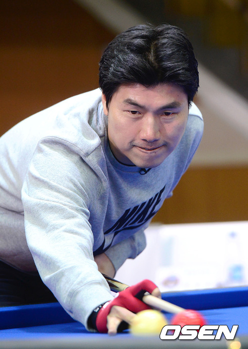 12일 오전 서울 송파구 삼전동 배명고등학교 체육관에서 진행된 제1회 지마이다스배 '2012 프로야구선수 3쿠션대회'에서 롯데 장성호가 진지하게 경기에 임하고 있다.